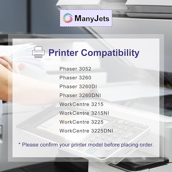 - PRINTER COMPATIBILITY: Compatible for Xerox WorkCentre 3215 toner ,WorkCentre 3215NI, WorkCentre 3225DNI, WorkCentre 3225; Phaser 3260, Phaser 3260DI,Phaser 3260DNI, Phaser 3052 Ink Printer