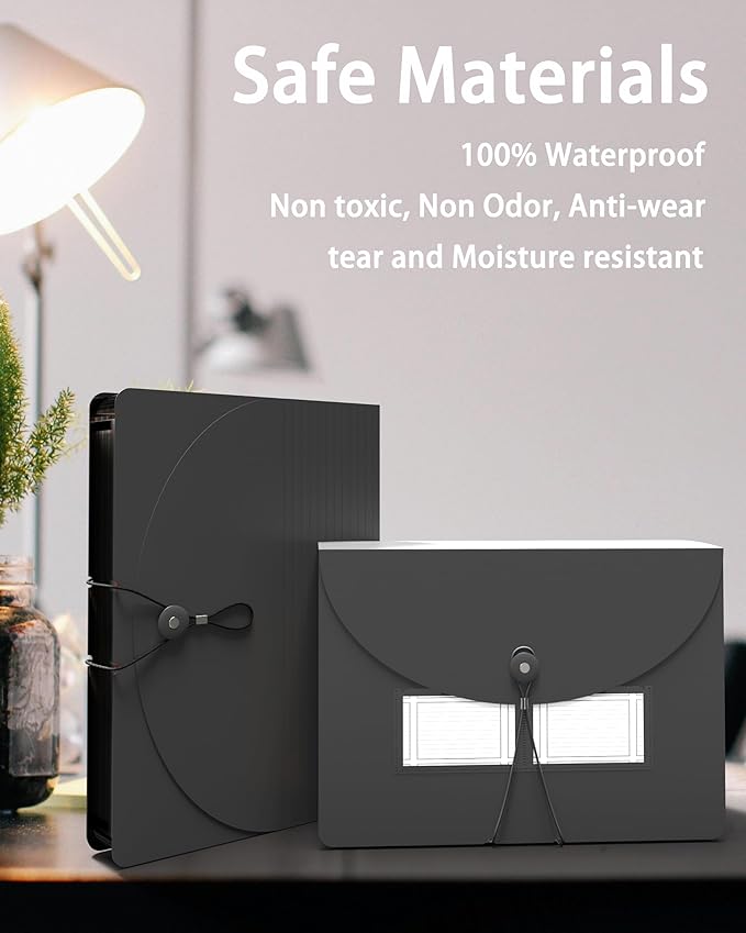 - 📂【STABLE & WATERPROOF MATERIAL】-Our accordion folder is made from high-quality polypropylene (PP) plastic material (nontoxic and nonradioactive), which is environmental and friendly, also not easy to break or deformation. It's very stable and waterproof.