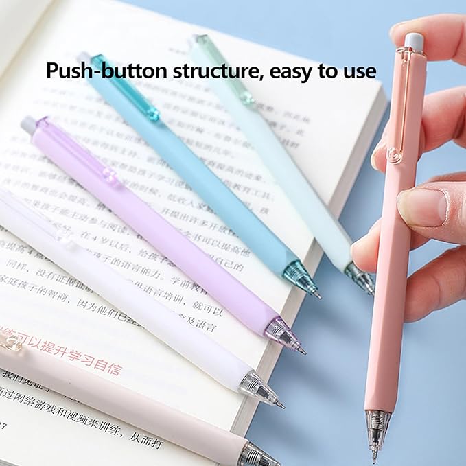 HeTaoCat Retractable Gel Pens, 6 Pastel Exterior Colors, 0.5mm Fine Point, Quick Drying, Writing Drawing, Black ink gel pens, Box of 6 Pens (6)