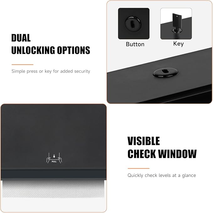 - 200-Sheet Capacity – Holds up to 200 multi-fold/tri-fold paper towels (within 3.1” width when folded), reducing refill frequency and saving time and effort