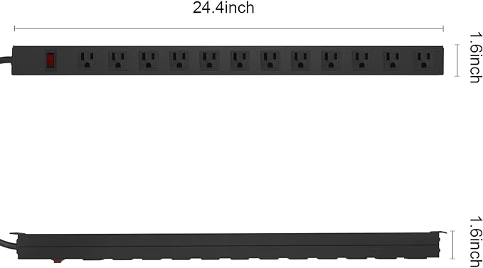 - 12 Outlet Wall Mount Power Strip: Is made of aluminum alloy, excellent workmanship, sturdy and durable. Perfect indoor use for any workshops, enclosed garages, offices, home, workbench, industrial and so on applications. Provide 4 screws, you can mount it where you want to.
