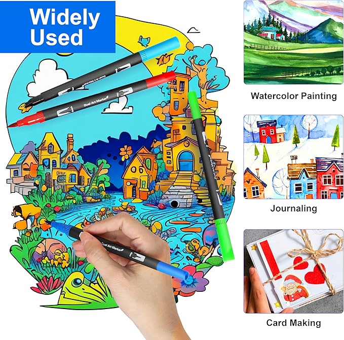 - 🎨120 Colored Markers: Dual tip markers are made with 120 commonly used colors to ensure that there will be no repetition in every application, thus achieving outstanding color effects. During your creative process, these pens will show their full charm, powerfully stimulating your imagination and creativity, enabling you to create even more wonderful works.