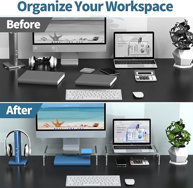 - Premium Quality: Monitor stand is made of high-quality crystal acrylic material, which is long-lasting and modern. With its crystal platform and exquisitely polished acrylic material, this monitor riser complements any decor at your home or office.