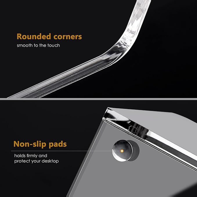- 【 Sturdy and durable】: Sturdy and durable. Made of high-quality PMMA organic material, it's hand-polished with rounded corners and a non-slip base to ensure it won't slide easily on your desktop.