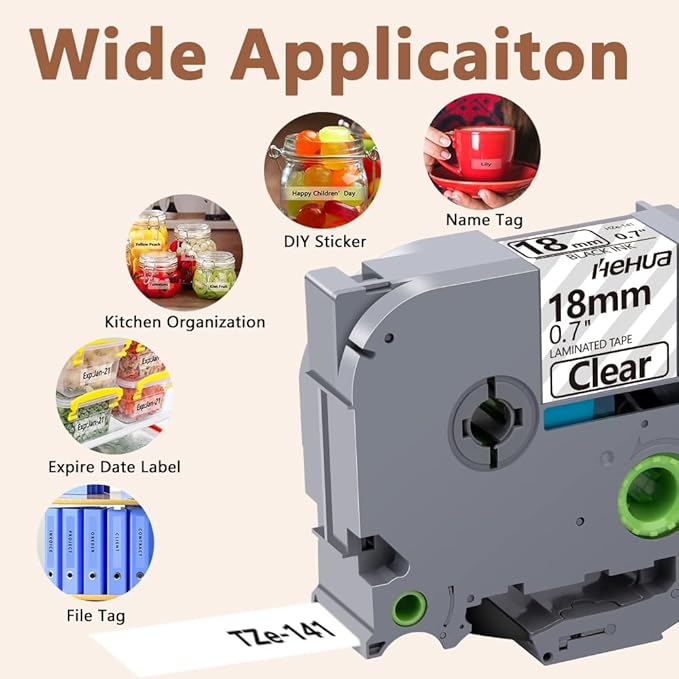 Hehua 18mm 0.7 Laminated Clear Label Tape Compatible for Brother Clear Label Maker Tape TZe-141 TZe141 TZ-141 TZ141 for P Touch PT D400 D450 D600 D610 P710BT, 3/4'' x 26.2ft Black on Clear, 3 Pack