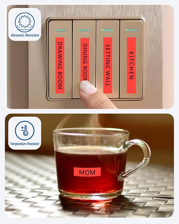 - Msudoku Tze Tape Features: Compatible for brother p touch label Tape is Laminated, Water Resistant, Abrasion Resistant, Grease Resistant, Grime Resistant, Temperature Resistant, Sunlight Resistant