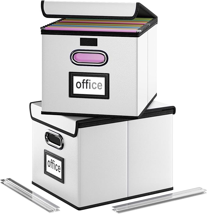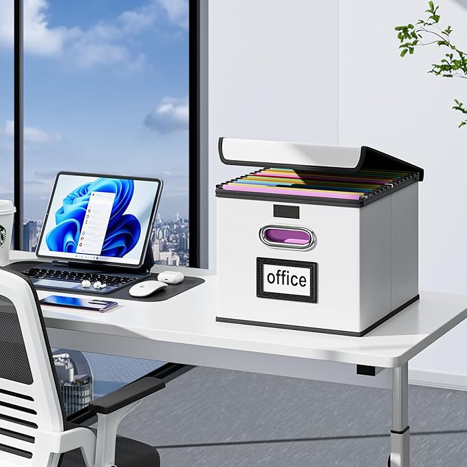 - Unique Functional Design - This file organizer both sides are equipped with practical PVP slide rails, which can not only prevent the two sides of the storage box from loosening, but also facilitate the sliding of the file folder, which is very suitable for hanging file folders. The metal handles on both sides allow us to easily move the storage boxes, and the label slot on one side facilitates classification. Functional features and a beautiful design create the best filing box organizer.