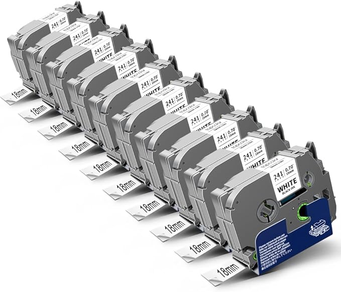 - Package Content: 10-Pack 18mm label tape compatible with Brother Tze241 Tze-241 Tz 241 Tz241 Tz-241 3/4" p touch label tze tz tape 18mm 0.7" Laminated White. Size: 3/4 inch (18mm 0.7") x 26.2 feet (8m). Color: Black on White