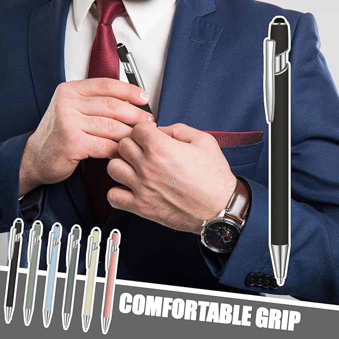 - You will get: 12 pieces ballpoint pens with stylus tip, enough for your daily needs and replacements; The size of a single metal stylus pen with stylus tip is 5.5 x 0.4 inch/ 14 x 1 cm, which is the proper size for a pen; Note: The ink is blue