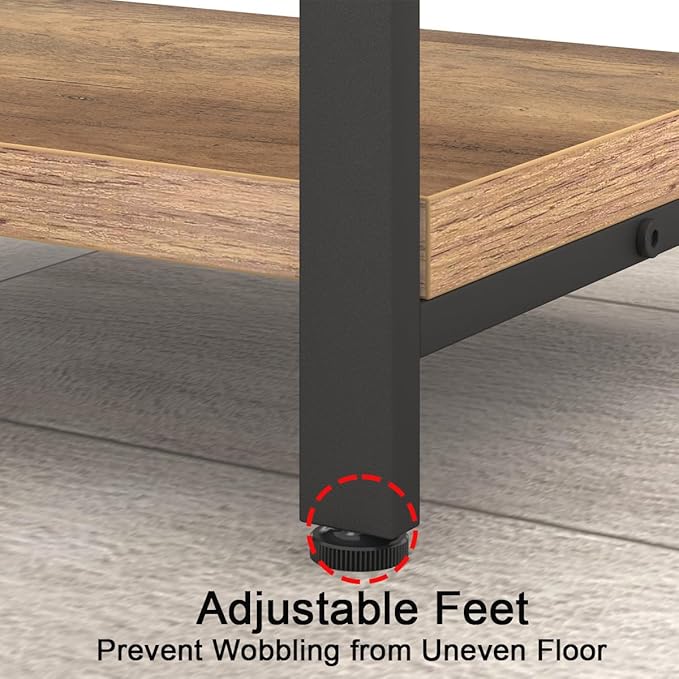 - 【Sturdy Construction】: Crafted from high-quality MDF board and thick steel metal frames, each shelf can support up to 100 pounds, making it a total weight capacity of 400 pounds for the rustic 4 shelf bookcase. Additional X-shaped reinforcement bars provide robust support for this wooden and metal book shelf, ensuring its stability and durability. The adjustable leveling feet on the storage book shelves help eliminate wobbling and prevent floor scratches.
