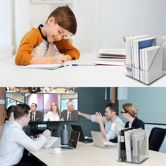 - Stylish Design: Our transparent design lends elegance and sophistication to your work area, letting you easily identify the contents of each clear magazine holder, adding a splash of books to your personal workspace.