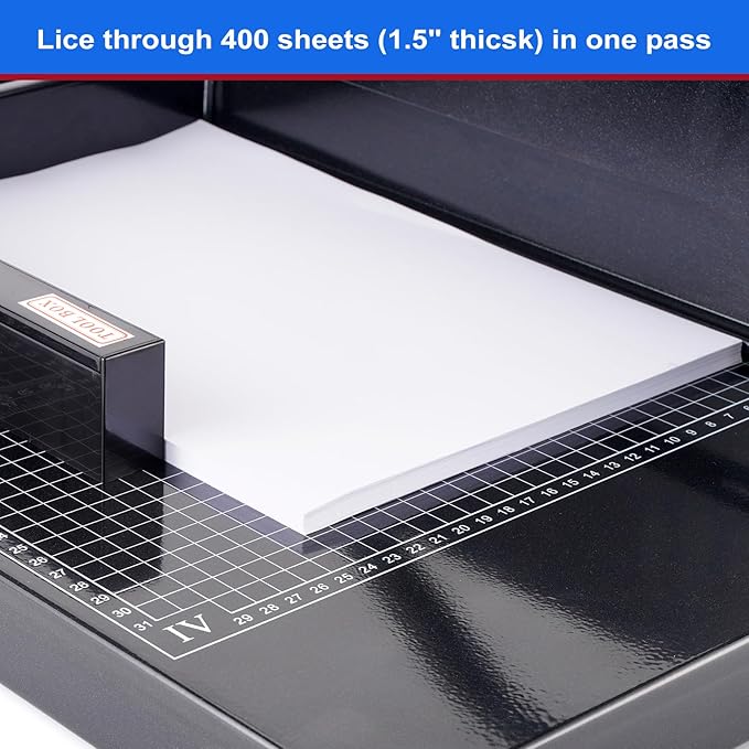- ★【Wide Application】Paper cutter heavy duty with a maximum cutting length of 12” allows to cut up to 400 sheets of paper (for 80g A4 Paper) once; Besides common paper, our heavy duty paper cutter can also cut something like soft PVC, leather, non-woven fabric, bubble film, fabric pearl cotton and etc, meeting your different cutting needs to the greatest extent& suitable for homes, classroom, offices, companies, printing factories, copy shop, etc..