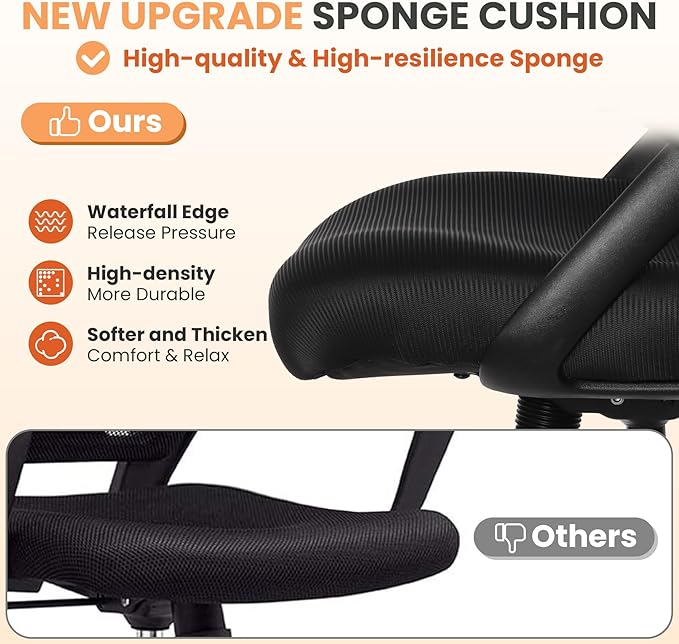 - THICKEN SEAT & SKIN-FRIENDLY FABRIC: Our drafting stools are made of softer and thicken foam to bring you more comfortable sitting experience. High resilience and high density sponge is durable and not easy to deform for long-time use. While skin-friendly mesh avoid any unpleasant rough feeling, it also adds some elegance for your room.