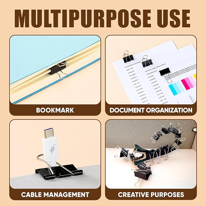 - MULTIPURPOSE USE - Kalerr Binder Clips are perfect for bookmarks, document organization, cable management, and creative projects. From keeping your pages in order to unleashing your creativity, these binder clips are your go-to solution for a range of purposes.