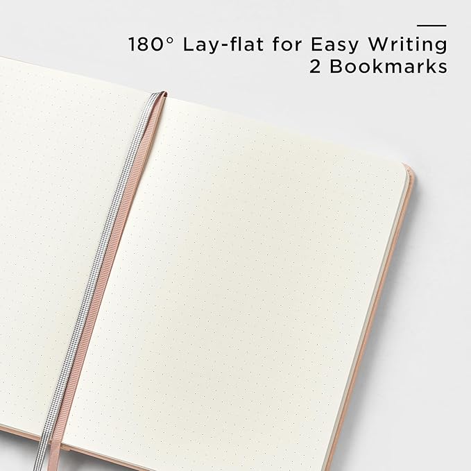 - 180° LAY-FLAT DESIGN: The lay-flat design allows for easy writing and ensures that you can utilize every page efficiently. Journaling, note-taking and planning has never been easier! 2 Bookmarks to help you find important content faster