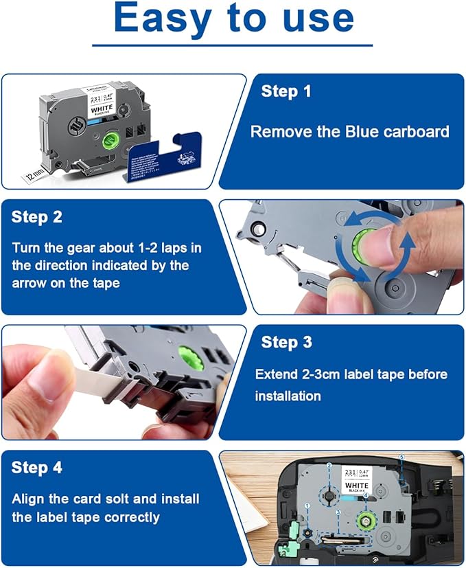 - Easy to use: These 12mm 0.47 Laminated White tapes comes with split backing design, the backing tape is split lengthwise in the middle for easy peeling, and all of Labelwell Laminated White TZe TZ Tapes with the feature of water resistant, temperature resistant, fade resistant, oil resistant, abrasion resistant, chemical resistant, and no sticky residue