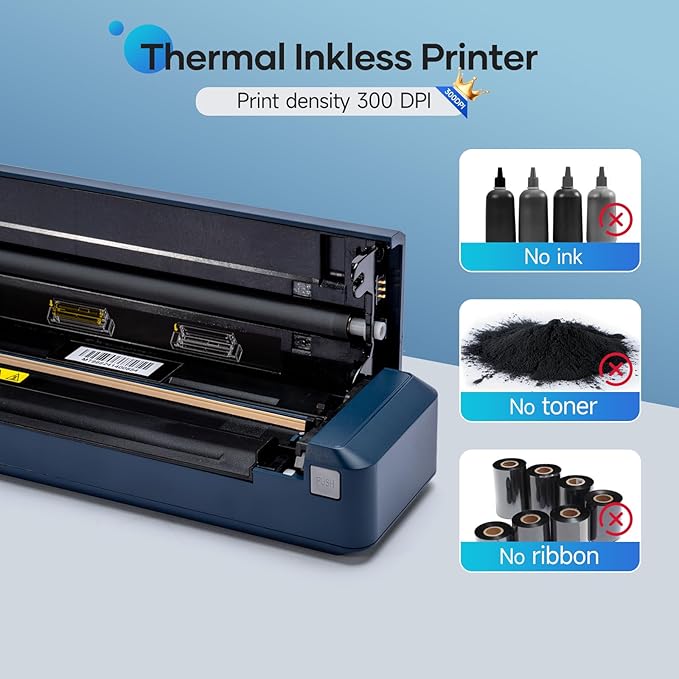 - 【INKLESS PRINTING】iDPRT MT888 portable A4 thermal printer uses advanced thermal technology. Say goodbye to expensive ink, toner or ribbons, and eliminate clogging and cleaning problems. This technology achieves high-speed printing, you can print more economically and environmentally friendly.NOTE: Inkless printer is a thermal printer and only supports thermal printing paper, not support regular copy paper.
