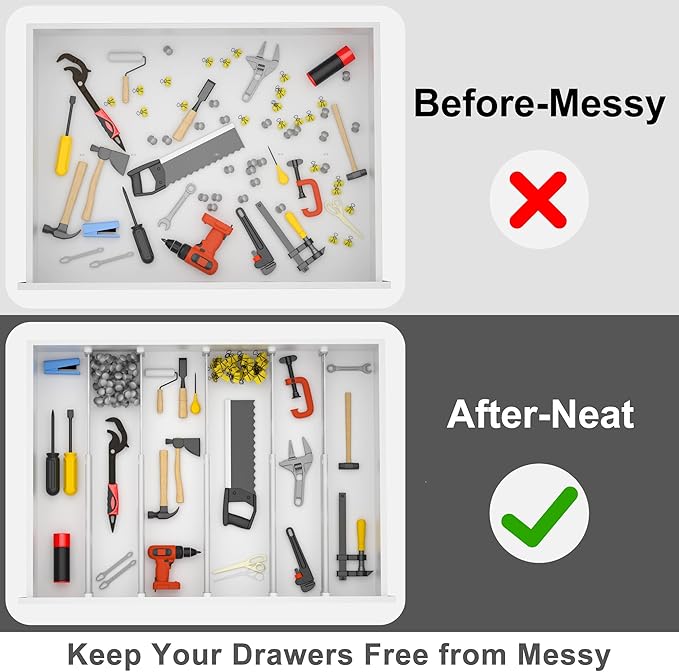 - DURABLE AND MULTI-FUNCTION: HiYZ kitchen expandable drawer dividers are made of strong and durable ABS material, anti-breakage and waterproof. Drawer organizer divider can be used to organize kitchen utensils, tools, baby clothes, socks, toys, snacks, etc