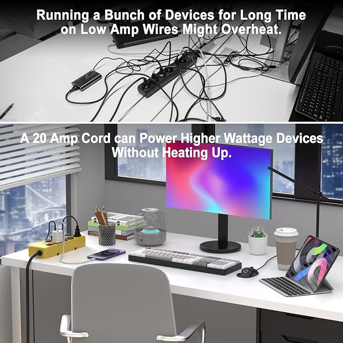 - Safety Features: With a built-in 4800J surge protector and a 20A circuit breaker, this power strip offers comprehensive protection against short circuits, overcurrent, overheating, and overvoltage. If the current surpasses 20A, the circuit breaker automatically shuts off power to prevent damage, and itβs easily reset by turning off the power and pressing the reset switch.