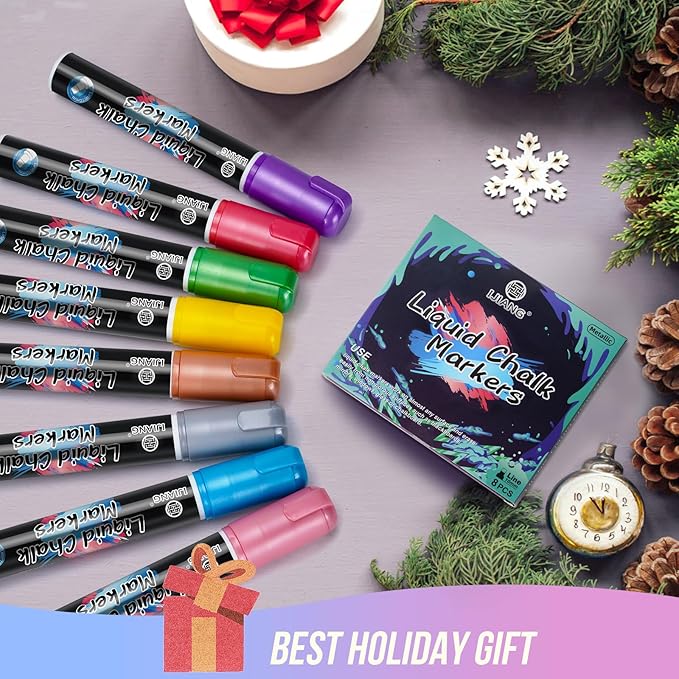 - Suitable for a Variety of Surfaces:Whether used as car window markers,bistro chalkboards,whiteboards,LED writing boards,house window and mirror markers,light panels,glassware,plastics,metal, Christmas banners,posters and a variety of DIY crafts these liquid chalk markers erasable are ideal for their versatility on any non-porous surface