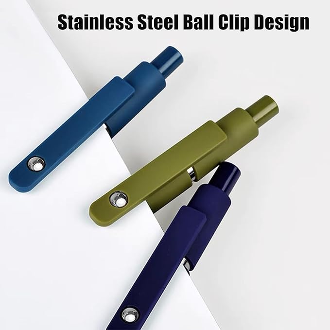 - ② Multi-functional Pen Clip: These unisex pens feature a retractable design that allows you to clip the ballpoint pen to your book or bag, making it easy to carry and preventing loss. In addition, by clicking the cap, the nib will automatically retract and won't stain books or pockets. Easy to use and store, perfect for writing on the go.