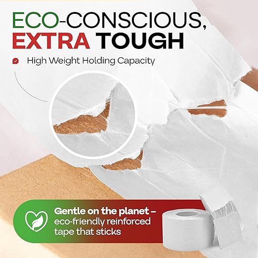 - EXTRA STRENGTH REINFORCED TAPE: 3 inches wide and 375 feet long Reinforced Water-Activated (Gummed) Tape with 70 lbs break strength. White color, pack of 6 rolls. Kraft paper tape reinforced with strong fiberglass yarn for extra strength.