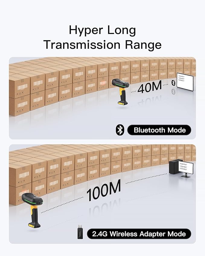 - Industrial-Grade Durability: Made of sturdy ABS and thickened soft TPU material covering more than 50%, this barcode scanner boasts excellent industrial-grade durability. It can withstand drops from a height of 11.8 feet (3.6 meters) onto concrete floors. The handle and scanning button are ergonomically designed for a comfortable grip, and there are anti-slip and sweat-resistant bumps on the handle, so you won't feel fatigue even during long working hours.