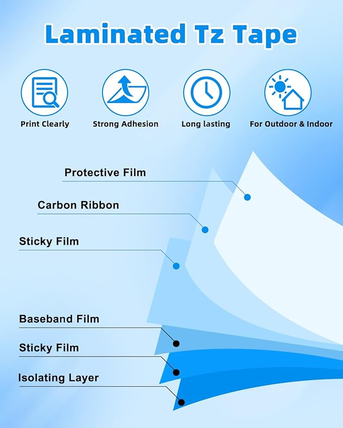 - Laminated for Durable Features: BAALAND 12 mm 0.47 laminated white tz tape is laminated design for strong durability and longevity, withstands water, fade, sunlight and high/low temperature from-22Β° (-30Β°C) To 258Β° (120Β°C), so it is durable for use outdoor or indoor