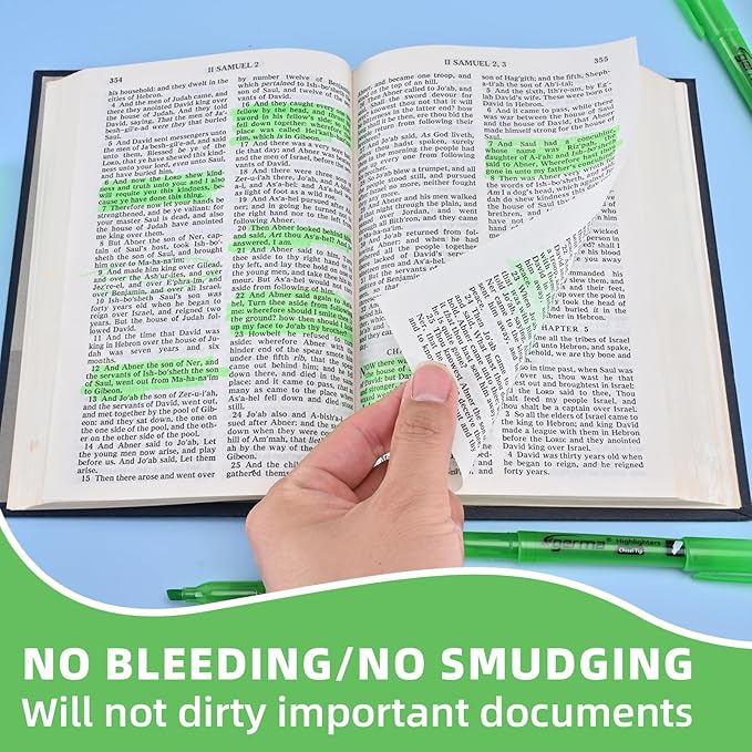 - TRANSPARENT INK: The translucent ink of this green highlighter set allows you to emphasize key points clearly without obscuring the text, that remain readable and no-bleed.
