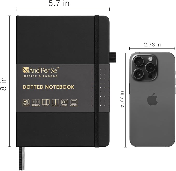 - 160 PAGES THICK DOTTED JOURNAL: 80 sheets/160 dotted paper notebook to provide you ample space to write. A5 size 5.7'' Γ 8'', perfect size for carrying around or put into your bag or purse, a convenient choice for on-the-go individuals.