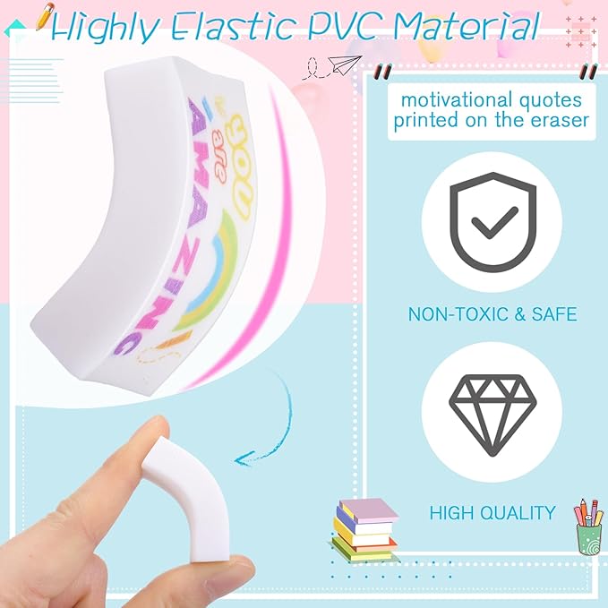 - Inspirational Features: what sets our drawing eraser apart is the printed inspirational cute words on each item; Using these erasers not only helps you to correct mistakes, but also serves as a constant reminder to stay motivated, making every writing or drawing session inspiring and fun filled