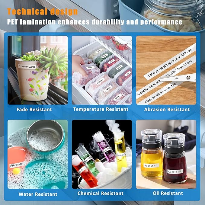 - Fatures: Comaotible with Brother TZe TZ tape 12mm 0.47 laminated white label maker tape strong adhesive, withstand water, withstand fade, withstand temperature, withstand abrasion