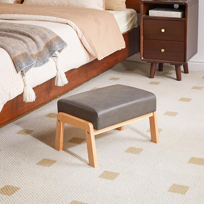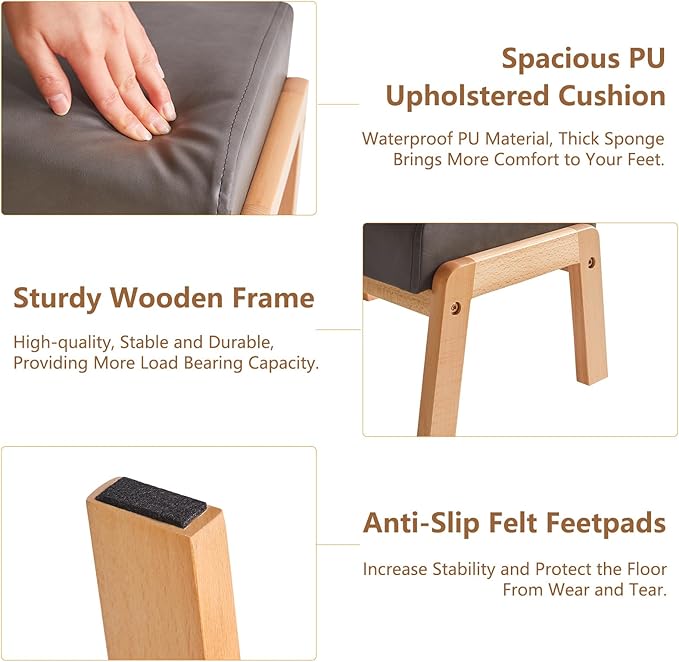 - Soft and Comfortable: The rectangle footstool ottoman is covered with soft and sturdy faux PU leather and filled with thick sponge. It is great for resting your feet, which helps to elevate your feet, reduce pressure on your ankles and prevent swelling. With the soft foot rest stool, you can enjoy your leisure time more cozy and comfortable.