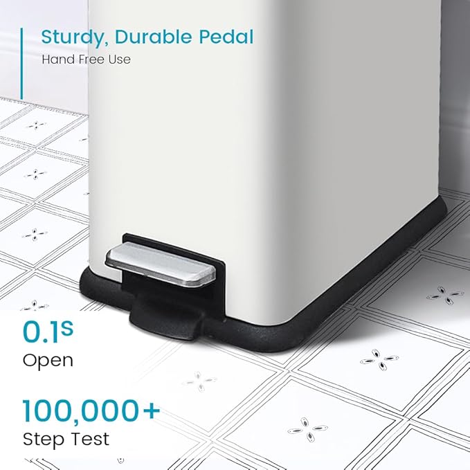 - Strong Steel Pedal: 12 Gallon pedal kitchen garbage cans is built with an easy step foot pedal for hands-free use. JM Β·YIPENG step trash can allowing you to step more than 20 steps a day for 20 years, engineered up to 100,000 steps.