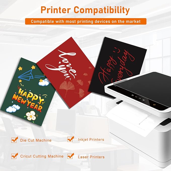 - ▶Printer Compatibility:our thick premium paper card stock is compatible with most types of laser printers, inkjet, die-cutting machines, and cricut cutting machines. Please ensure that your printer can print on 200gsm before ordering