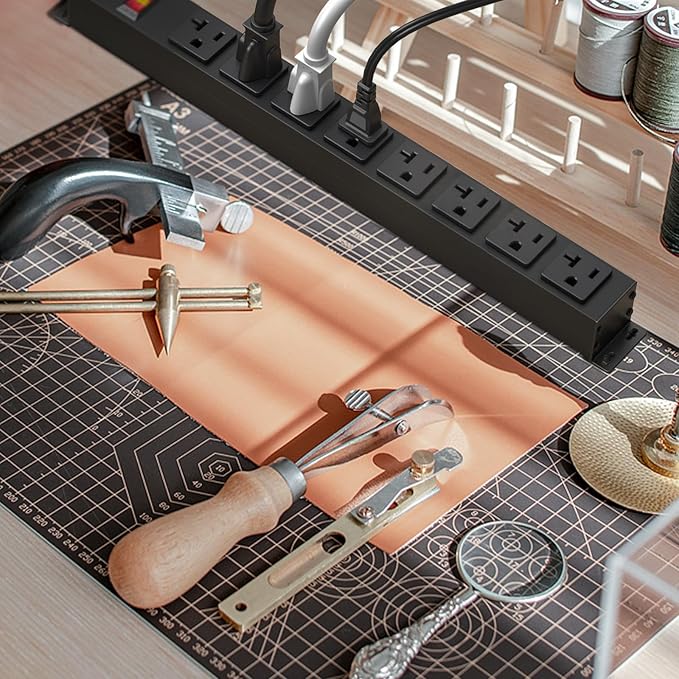 - ✔METAL WALL MOUNT POWER STRIP: This mountable power strip boasts a high-quality metal casing, ensuring durability and making it perfect for use in the garage, workshop, office, or on a workbench. With 4 metal mounting holes, it facilitates quick installation on desktops, under tables, workbenches, or walls, accommodating both vertical and horizontal setups.