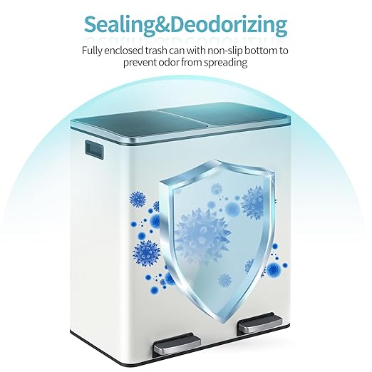 - 2Γ8-Gallon Compartments: 16-gallon step trash can has two compartments, combining garbage and recycling. Completely separated dual garbage and recycling can also avoid the smell of garbage. 2 removable inner buckets increase convenience