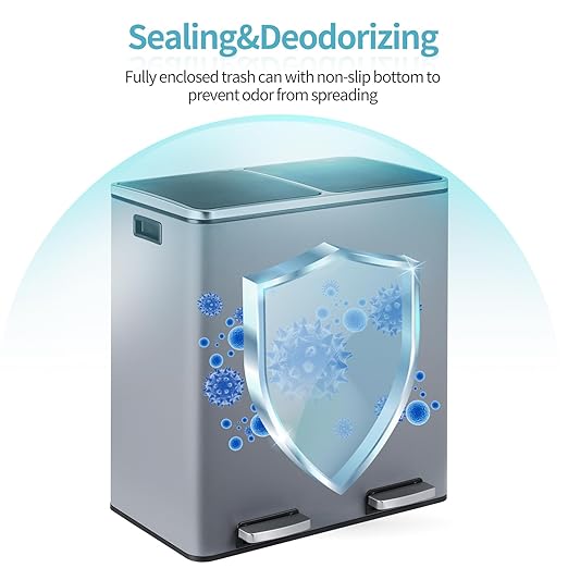 - 2Γ8-Gallon Compartments: 16-gallon step trash can has two compartments, combining garbage and recycling. Completely separated dual garbage and recycling can also avoid the smell of garbage. 2 removable inner buckets increase convenience