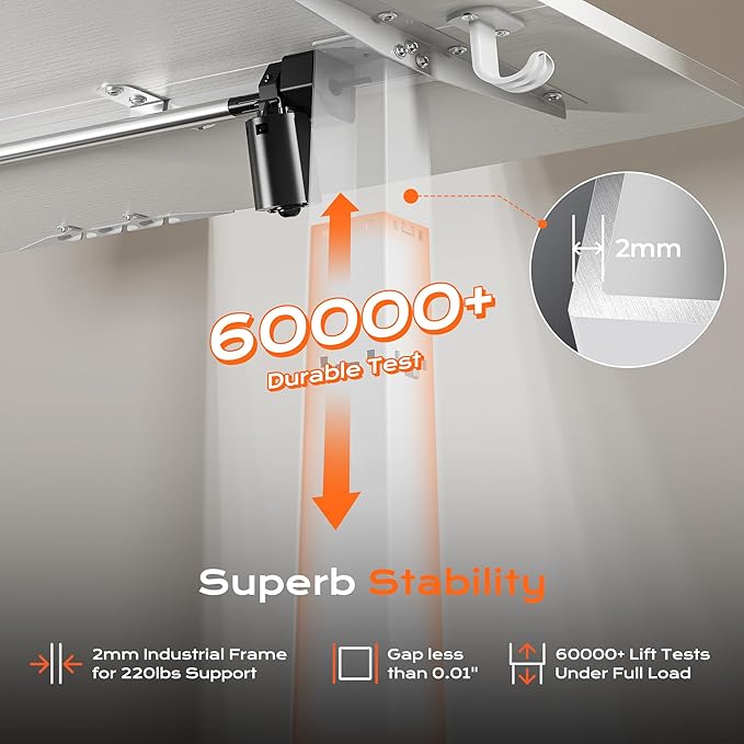 - 【Built to Last with Exceptional Stability】The industrial-grade steel frame and T-shaped design of the stand up desk support up to 220 lbs, ensuring stability and reliability for years to come. Paired with a durable motor, this home office desk is designed to meet the demands of your dynamic workday