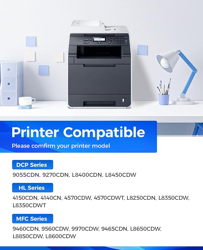 - Compatible Printer: Compatible with Brother DCP-9055CDN DCP-9270CDN DCP-L8400CDN DCP-L8450CDW HL-4150CDN HL-4140CN HL-4570CDW HL-4570CDWT HL-L8250CDN HL-L8350CDW HL-L8350CDWT MFC-9460CDN MFC-9560CDW MFC-9970CDW MFC-9465CDN MFC-L8650CDW MFC-L8850CDW MFC-L8600CDW Series Printer.