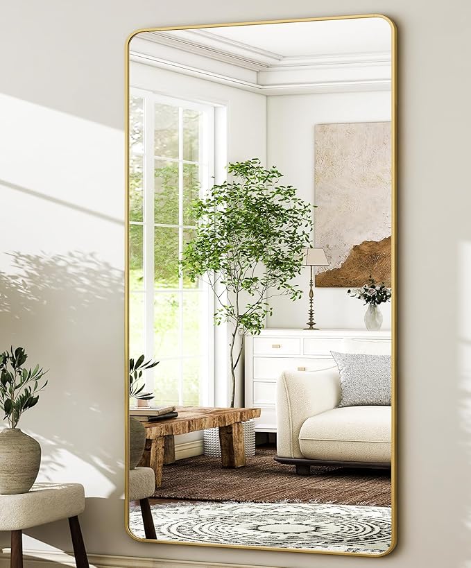 - Rounded Corned Full Length Mirror - Perfect blend of style and functionality with our stand up mirror full length. Capture your entire figure in a single glance, enhancing your light, beauty, and confidence