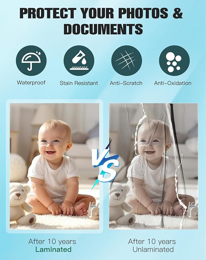 - 🔄【Auto Paper Feed & Intelligent Anti-Jam System】 Laminating has never been easier! With automatic paper feeding and a smart jam-prevention system, this laminator ensures a smooth, reliable experience that’s easy enough for kids, seniors, and first-time users to operate confidently.