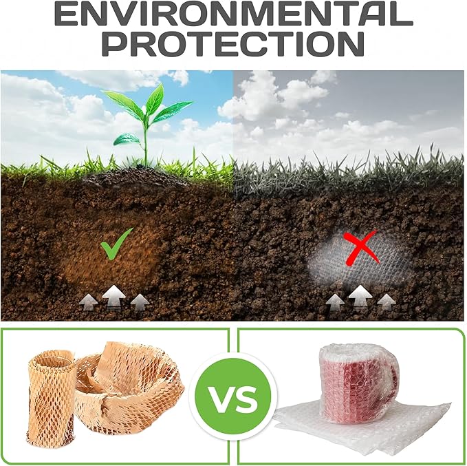 - ECO-FRIENDLY AND SUSTAINABLE - Our honeycomb packing paper is made from PEFC-certified Canadian paper that is 100% sustainable and replaces traditional plastic and bubblewrap for packing, offering an environmentally-friendly solution without compromising on protection for fragile items during shipment.