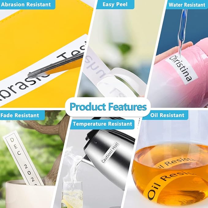 - All-Weather Durability: laminated tape core is waterproof, UV-resistant, and abrasion-proof, ensuring labels stay intact indoors or outdoors without fading or peeling