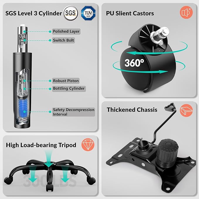 - 【Ergonomic Lumbar Support】The Bestfair home office desk chair is designed to perfectly align with the natural curvature of your spine, providing exceptional lumbar support. This promotes proper posture, reducing lower back pain even during extended hours of work or study.