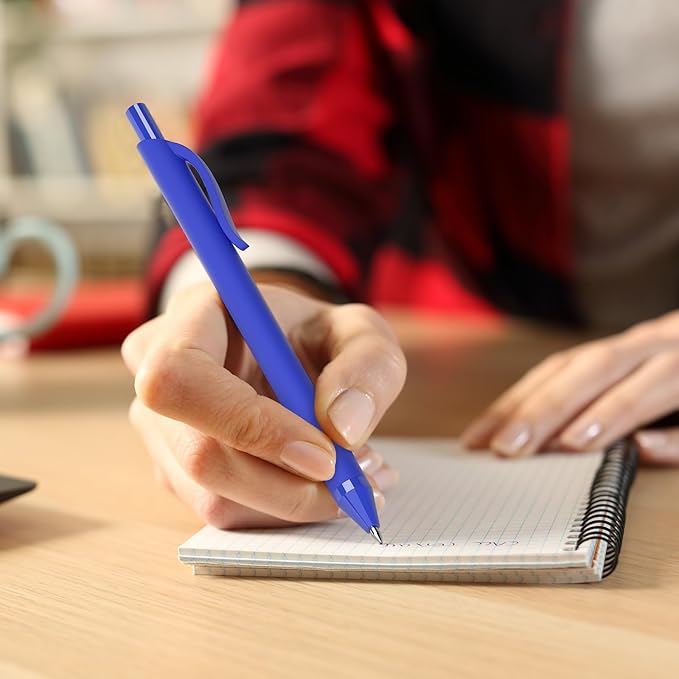 - 【COMFORTABLE TOUCH】The blue matte barrel of this click pen provides a soft and comfortable touch and a comfortable writing experience. Ultra-lightweight and compact, easily fits in backpacks, pockets or purses.