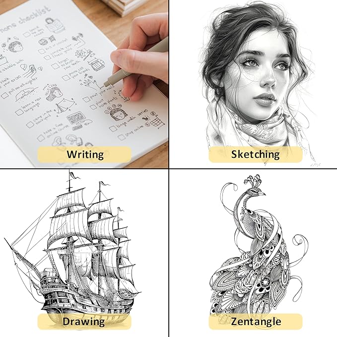 - Archival-Quality Pigment Ink β Waterproof & Fade-ResistantοΌXWT fineliner pens use rich black water-based pigment ink that is quick-drying, waterproof, sunproof, acid-free, and non-toxic. No smearing, ghosting, or bleeding through paper β ideal for long-lasting artworks, technical drawings, and note-taking.