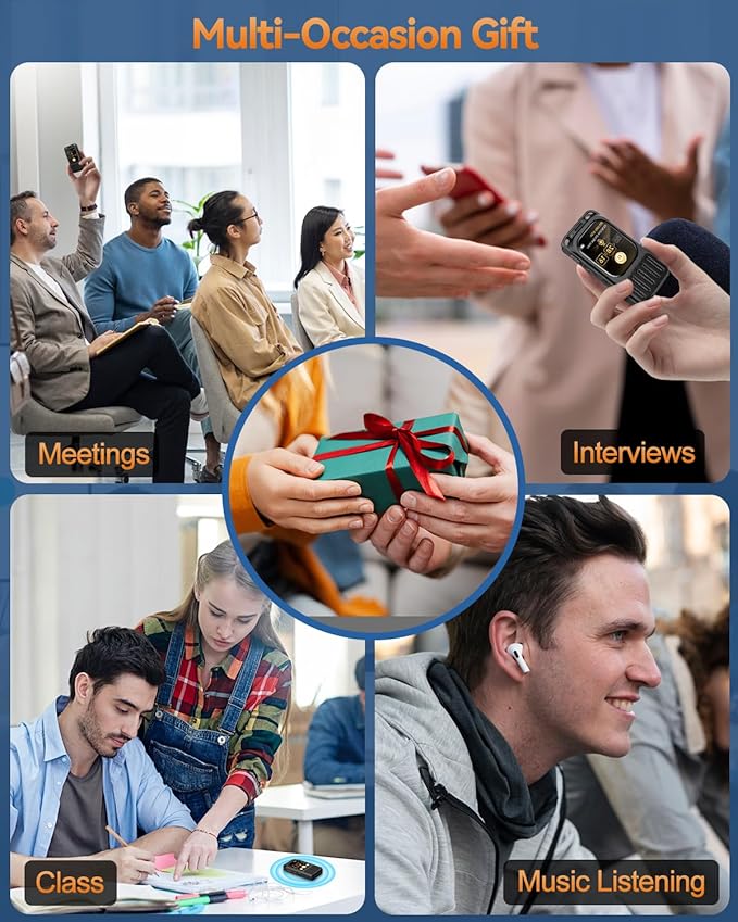 - 🎁 Complete Package & Reliable Support: The package includes a 128GB professional voice recorder, USB-C cable, quick start guide, and detailed user manual. Featuring a durable, premium aluminum alloy housing, it’s a thoughtful gift for family, friends, students, and teachers. If you have any questions, reach us anytime via Amazon—we’ll respond within 24 hours to provide support and guidance