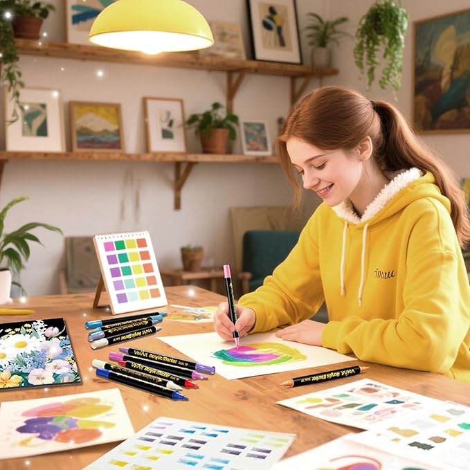 - 120 Vibrant Colors with Dual Tips – Each acrylic paint marker features a versatile brush tip for bold strokes and a fine tip for detailed work, offering endless creative possibilities for artists, kids, and craft lovers.