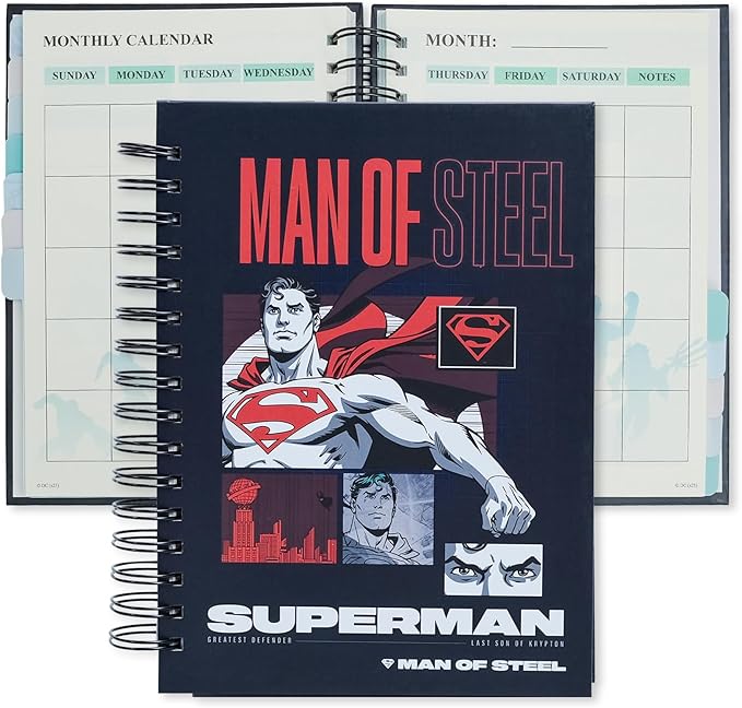 Hero Academic Planner, Weekly Monthly Daily Agenda, Custom Date Organizer for Time Management, Spiral Bound Notebook with Colorful Tabs,Datebooks for School Office Home(Navy Red)